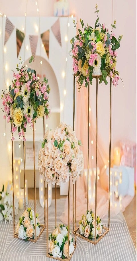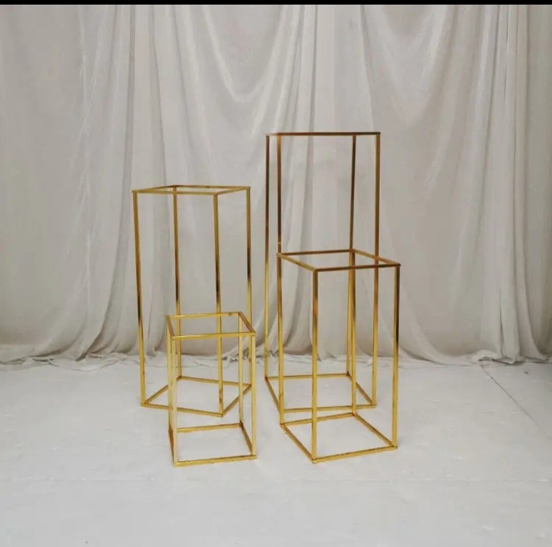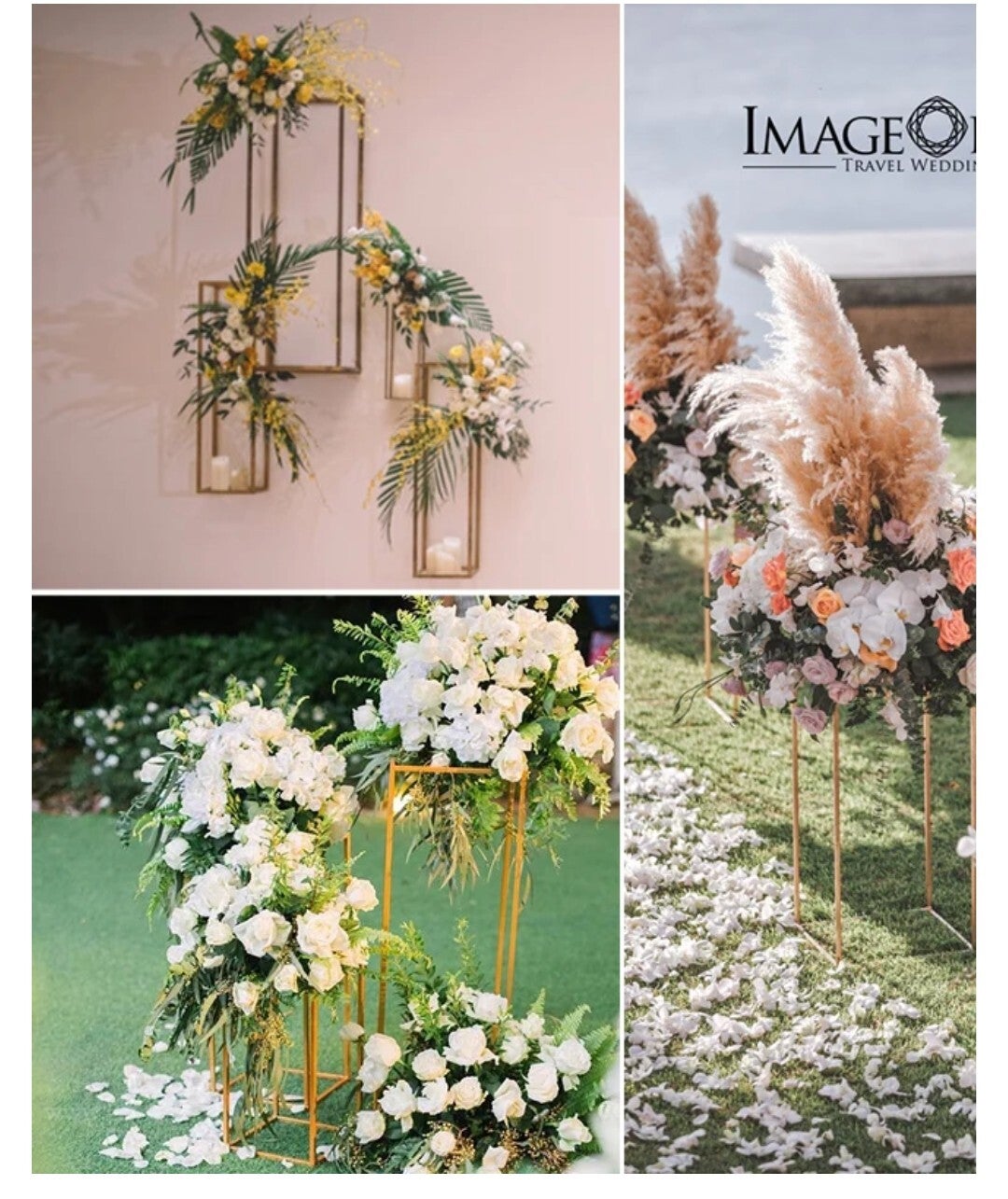 Rectangle Metal Gold Frame Flower Stand Centerpiece
